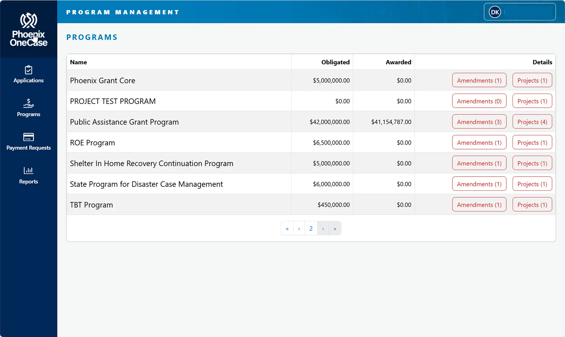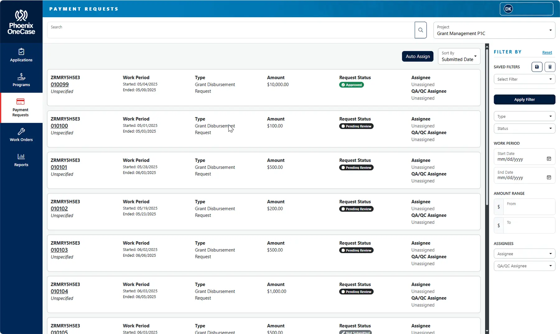 The Phoenix OneCase Grant Management solution is a dynamic, customizable workflow and forms engine that supports the end-to-end lifecycle from application submission, and eligibility review, to contract creation, signature, funds disbursement, reporting, and closeout.